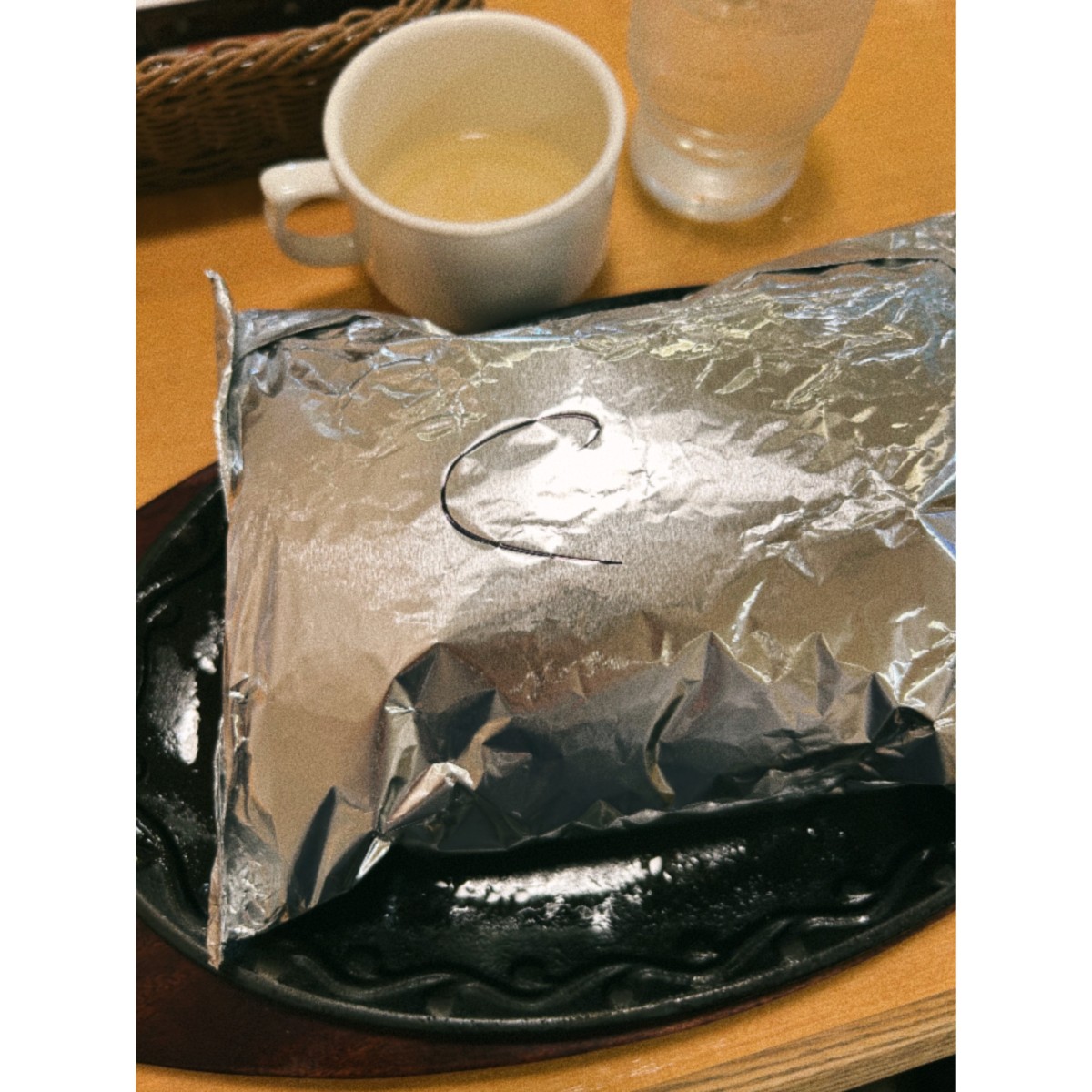 包みハンバーグです。わたしはチーズを選びました。チーズの「C」。母はエッグで「E」と書かれていました。「あなたに食べたいものを聞いたら、いっつもハンバーグかカレーって言われる」と言われました。いっつも、ハンバーグかカレーに付き合ってくれてありがとうございます。